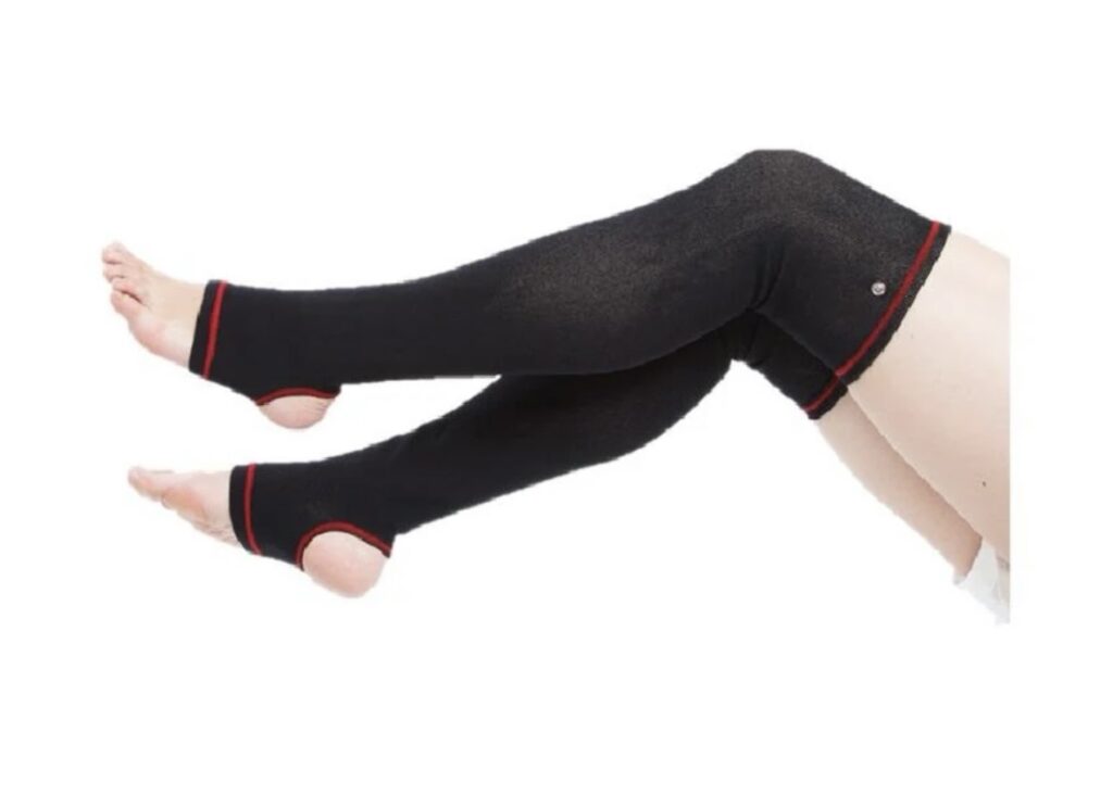 よく膝上から下だけが痩せたり、疲れが取れるんですか?とご質問頂きますが、そんな事はございません!電気というものの特性上二極間を流れます。なのでサポーターが当たっている場所だけではなく電極があるポイント二箇所のその合間にある場所にも流れるんです。