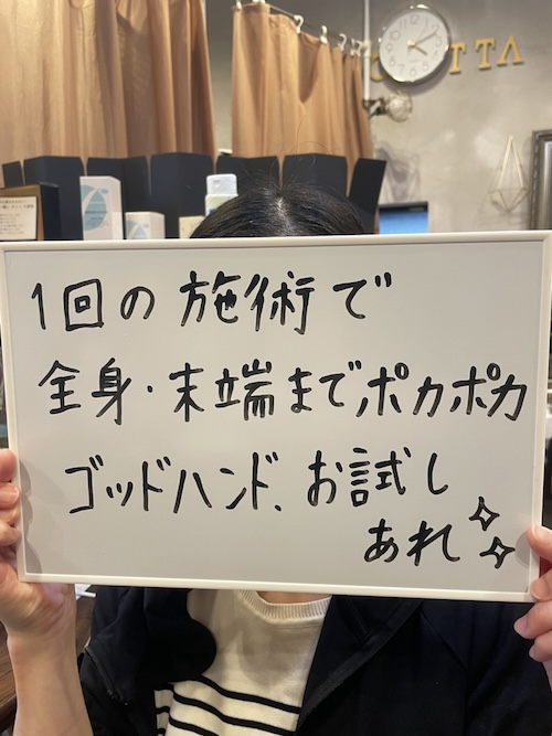 全ての人に受けて欲しいですが、何をしても身体が温まらない人はとくにオススメです!直接暖かい処置がある訳じゃないので受けたそこですぐ暖かかい!とは感じないけど続けるといつのまにか暖かい自分が当たり前になりました。